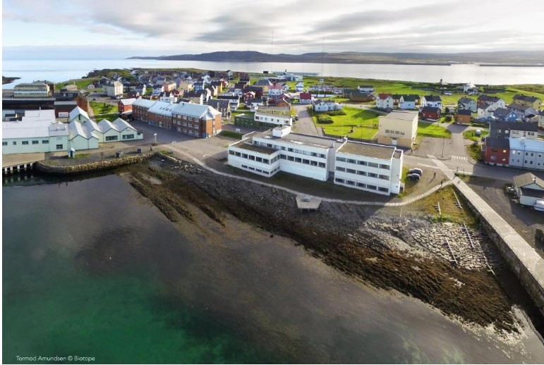 Image: Vardø hotell i sentrum av bildet helt ved fjorden